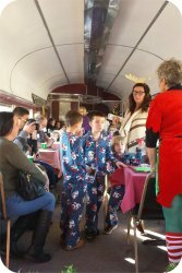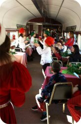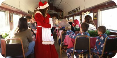 Conductor Jim will then call All Aboard for passengers to enter the 1937 observation car where they will experience the family classic The Polar Express. Mrs. Claus will read The Polar Express followed by Santa's grand entrance. Everyone will enjoy watching the Hot Chocolate dancers perform to "Hot Hot Hot" then share cookies and hot chocolate with Santa while Christmas caroling with Santa's elves.
