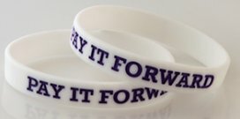 While speaking with your group, we will hand out literature of current Pay it Forward activities that are going on in your area. And if supplies are available, we will give out bracelets or bumper stickers to your group to promote the Pay it Forward Movement.